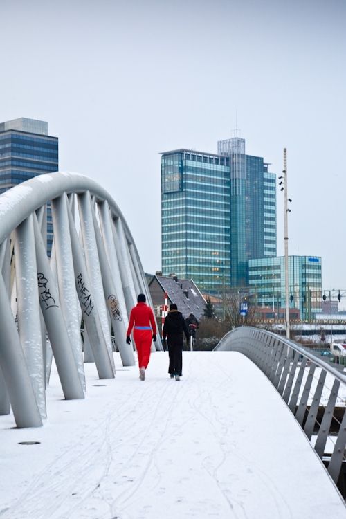 Eerder deze week, de dames zijn al vroeg op stap voor de (dagelijkse?) jogging ronde. Het rood voegt mooi wat kleur toe aan de foto.