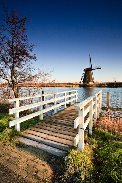 Het mooie van fotograferen in dit seizoen is dat op de dagen dat het weer meewerkt er fantastisch licht is te vinden. In dit geval heeft de vorst er voor gezorgd dat de lucht kraakhelder was, de laagstaande zon wierp een goudgele gloed over het bevroren bruggetje.