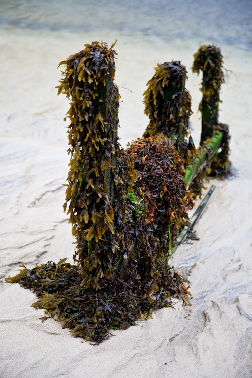 Daarna doorgereden richting Mallaig waar de ferries richting de eilanden vertrekken. Via de ‘alternative coastal route’ kwamen we een strand bij Rhu tegen met erg helder wit zand (zelfs onder deze regenachtige omstandigheden). Waarschijnlijk was het geheel niet te belichten geweest als er zon op had gestaan.
