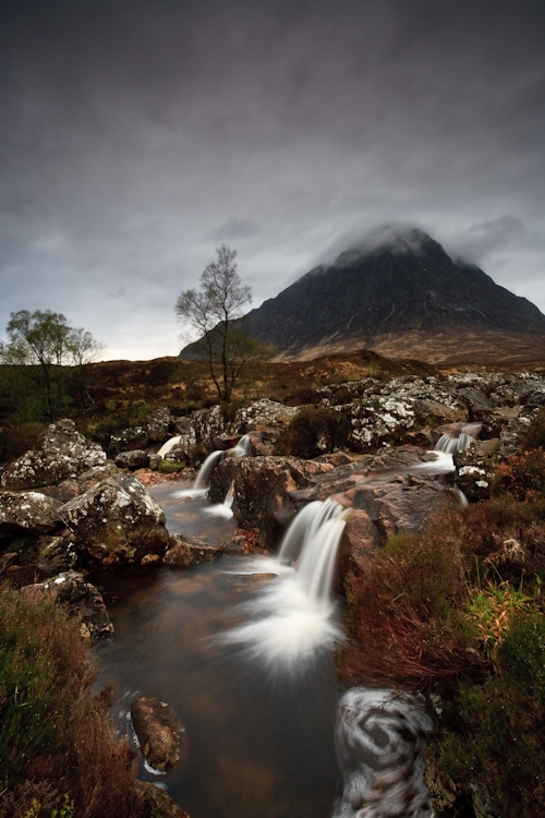 De berg is te zien vanaf de A82, een belangrijke doorgaande weg met 1 baan beide kanten op die helemaal van Stirling naar Inverness loopt, maar als je bij het bordje Glen Etive afslaat en tot de eerste brug rijdt dan kom je een schitterende waterval tegen. Een veel interessanter beeld dan enkele meters van de autoweg.