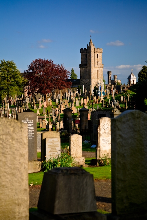 We hebben echter wel twee heerlijke halve dagen gehad in Stirling, fantastisch weer in een mooi historisch stadje. Stirling is vooral beroemd om het kasteel en Wallace Monument, maar de begraafplaats naast het kasteel mag er ook zeker zijn. In het avondlicht daar ruim een uur rondgelopen en ook vanochtend voor vertrek richting vliegveld nog een uurtje gespendeerd.