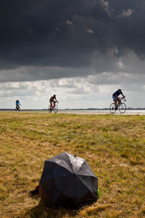 De fotograaf (moi) mag dan niet zo veel problemen hebben met de regen, maar lang niet iedereen is het daar mee eens. Dit vond ik wel een creatieve oplossing.