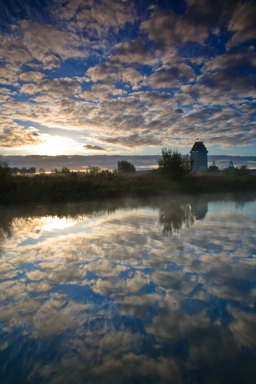 Een schitterende reflectie van de wolken in de lucht in het stille water, het kasteel neemt een stapje terug. Gebruik gemaakt van een grijsverloop filter, zoals voor bijna al mijn foto’s van het kasteel (op die van gisteren na).