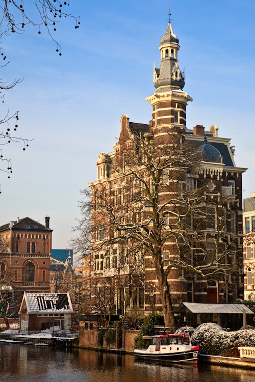 Tussen de kruising Spiegelgracht/Weteringschans en Paradiso staan een aantal echte paleisjes. In een aantal zitten bedrijven, maar volgens mij zijn er ook een paar in privé eigendom. Gefotografeerd met het warme licht van de langzaam ondergaande zon.