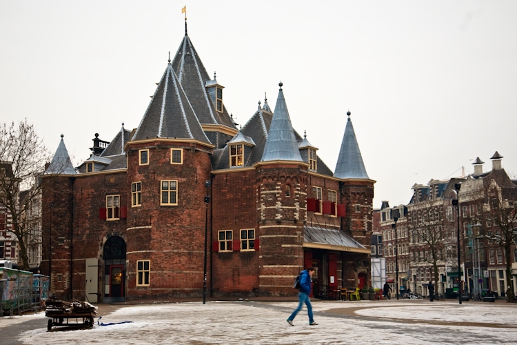 Een oudere foto van De Waag. Het gebouw vult een groot gedeelte van de foto, de lucht was niet erg interessant.