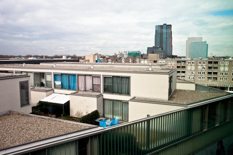 Bovenop de winkels in het nieuwe stadshart zijn ook woningen gebouwd. Ik wist alleen niet dat er ook tuintjes bij waren. En nu kan elke Almeerder dat zelf bekijken, want de derde verdieping van de bibliotheek geeft perfecte inkijk in de tuintjes. Zo zie je ook meteen waar de Albert Heijn winkelwagentjes blijven :)