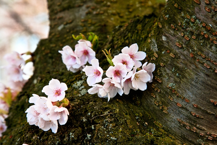 Het is altijd goed te kijken of je ook close-ups kunt maken naast het vastleggen van het grotere geheel. Zo ben ik de rij bloesembomen bij Muziekwijk een stuk of vier a vijf keer helemaal heen en weer af gelopen en kwam op een redelijke hoogte deze bloesem tegen die spontaan uit de takken lijkt te komen.